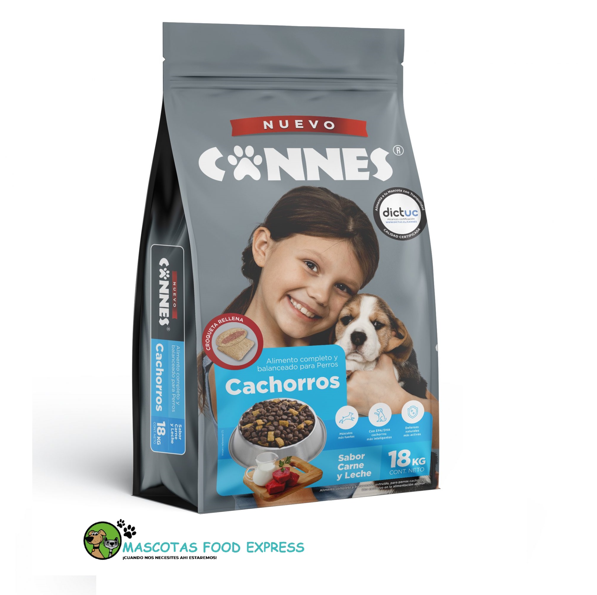 ALIMENTO CANNES CACHORRO SABOR CARNE Y LECHE 18 KG