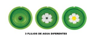 Al insertar la flor crea corrientes largas similares al grifo de agua. La flor es fácil de añadir o retirar de la fuente. Añadiendo el casquillo de la flor se vera el agua burbujeante en la parte superior, por lo que dara atractivo a su gato y este elegirá si jugar o beber de ella. La fuente de la flor es fácil de desmontar y limpiar y tiene un diseño ergonómico .