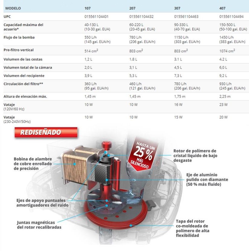 + eficiencia energética: la Fluval 307 tiene un consumo de energía de solo 15 vatios