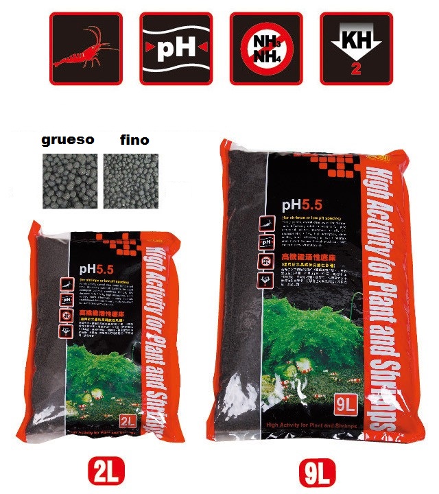 Este suelo aqua propósito-desarrollado tiene un tamaño de gránulo de 2-3 mm que proporciona condiciones de enraizamiento ideales para las plantas acuáticas, mientras que también permita que el agua fluya a través del sustrato. También estabilizar el pH y KH y reducir NH3 / NH4.